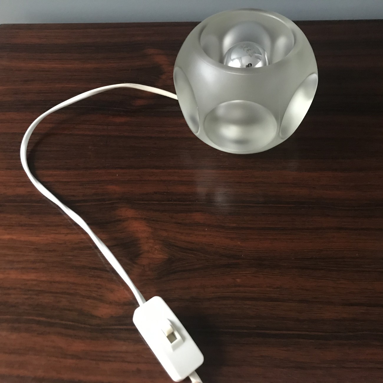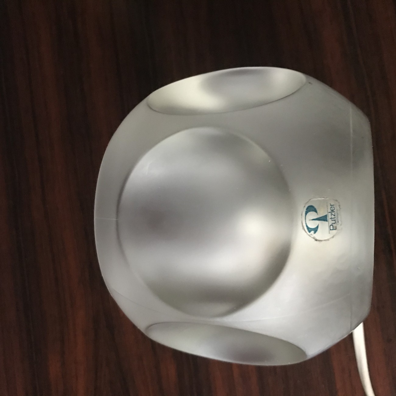 Luminária de mesa produzida pela marca alemã Peill & Putzler, com forma redonda e acabamento fosco.