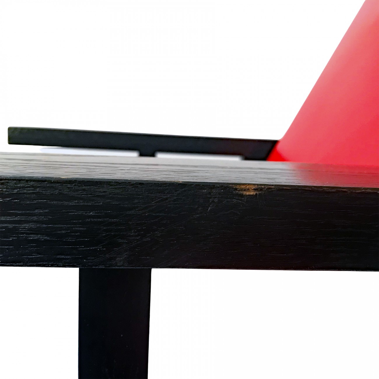 Os primeiros protótipos da cadeira vermelha e azul foram desenhados em 1918 e mais tarde, por volta de 1923, a cadeira foi pintada nas cores vermelho, amarelo, azul e preto, associada ao movimento de arte e arquitetura holandesa de Stijl.