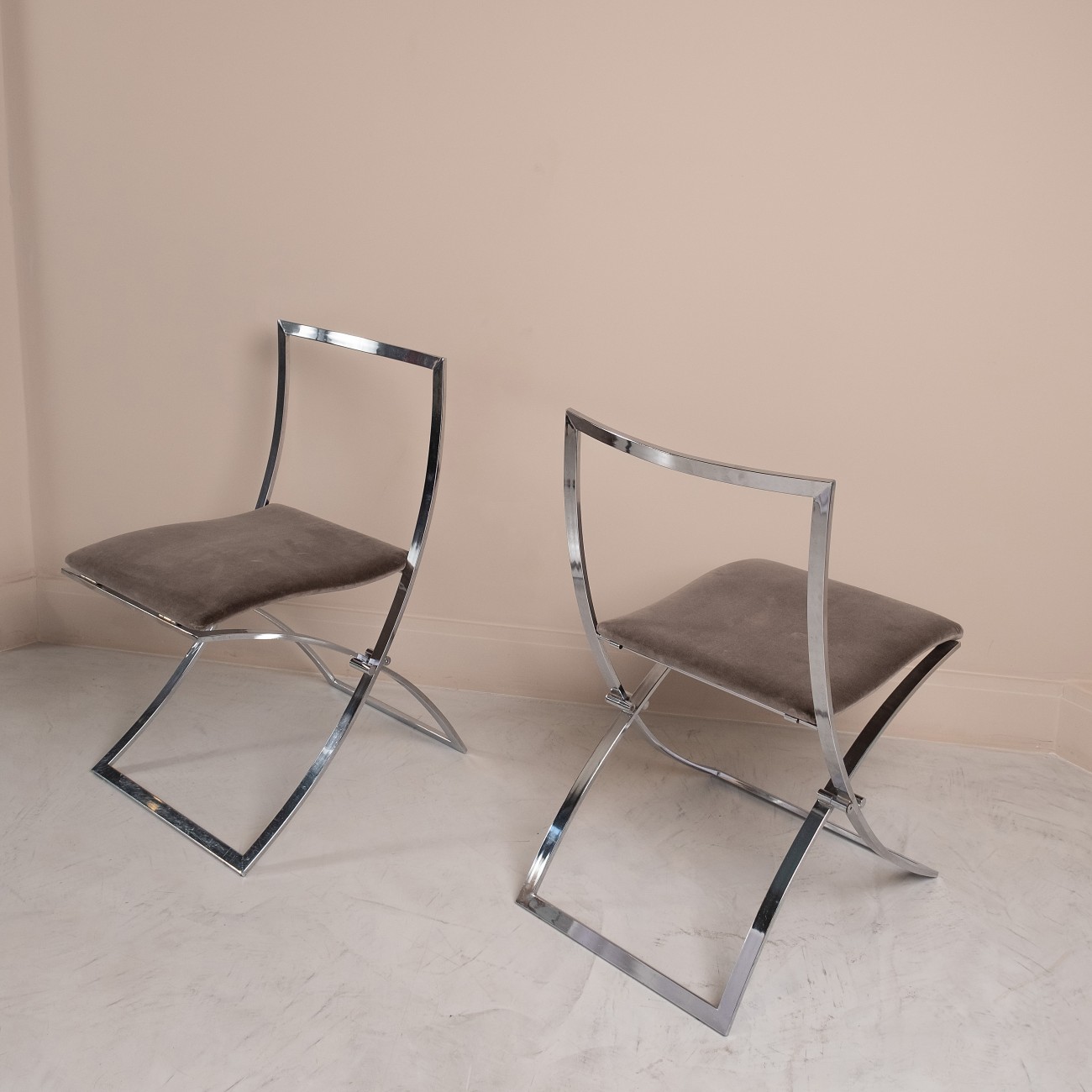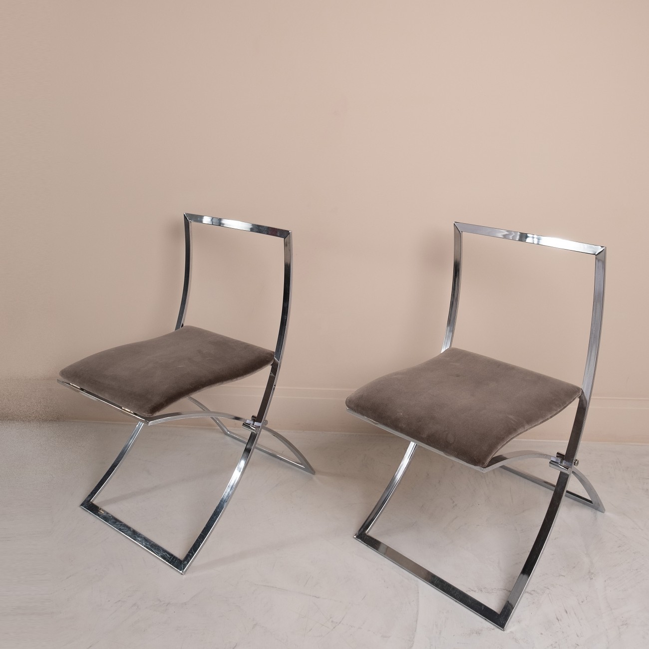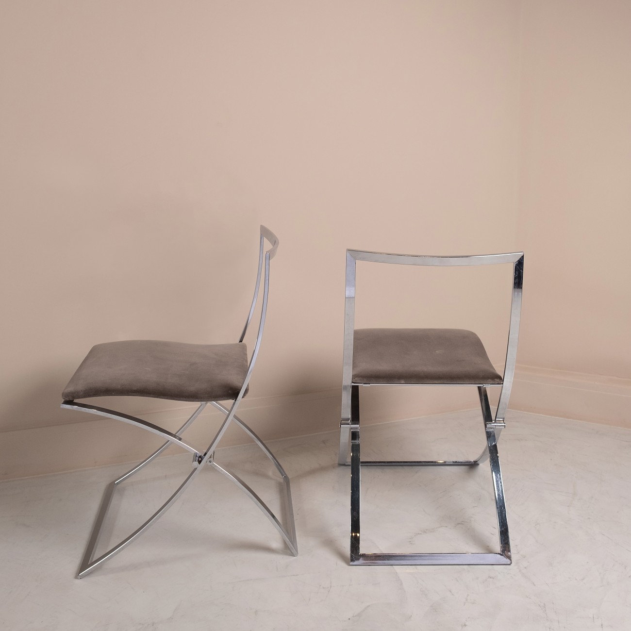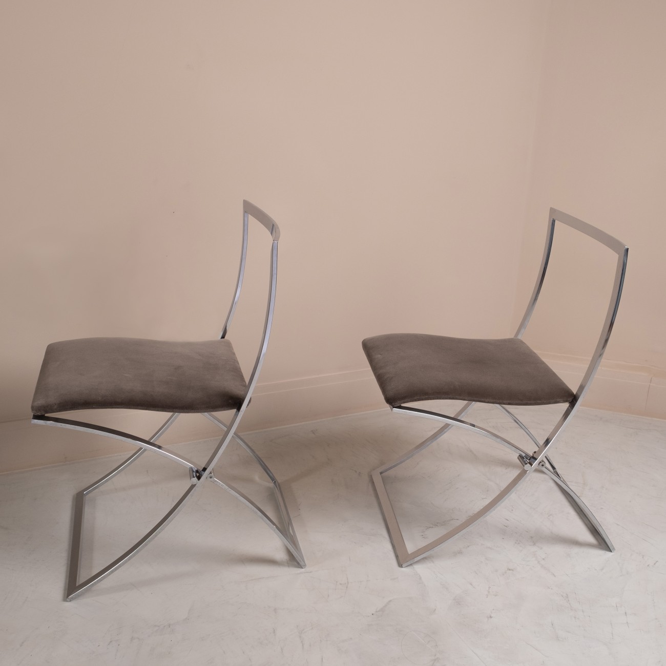 Par de cadeiras "Luisa" em metal cromado desenhadas por Marcello Cuneo para Mobel, Itália 1970.